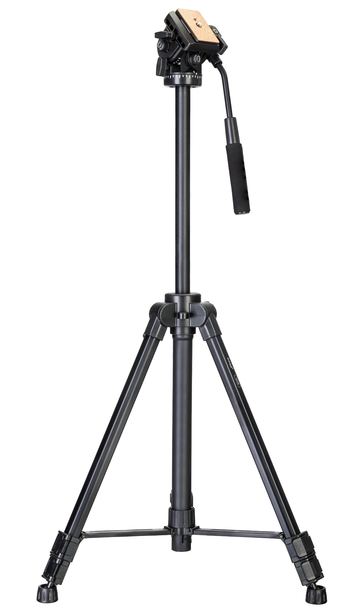 La cabeza del trípode se puede girar 360° horizontalmente para obtener una vista panorámica completa, así como inclinarla hacia arriba y hacia abajo. Puede regular los movimientos del trípode con un práctico mango. Gracias a la placa de liberación rápida, puede quitar rápidamente el dispositivo si es necesario.